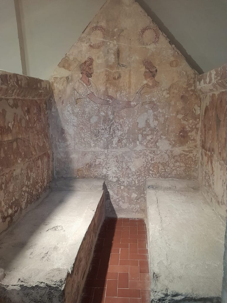Per sabato 28 alle 10 la soprintendenza di Paestum ci aprirà i sotterranei del Museo archeologico per visitare le tombe a camera ricostruite e i più significativi affreschi delle tombe smembrate e ricollocate in appositi carrelli per lo studio e il restauro a disposizione degli archeologi. Vi prego di farmi sapere se qualcuno di voi viene solo per questa visita per comunicare oggi stesso il numero definitivo dei partecipanti.