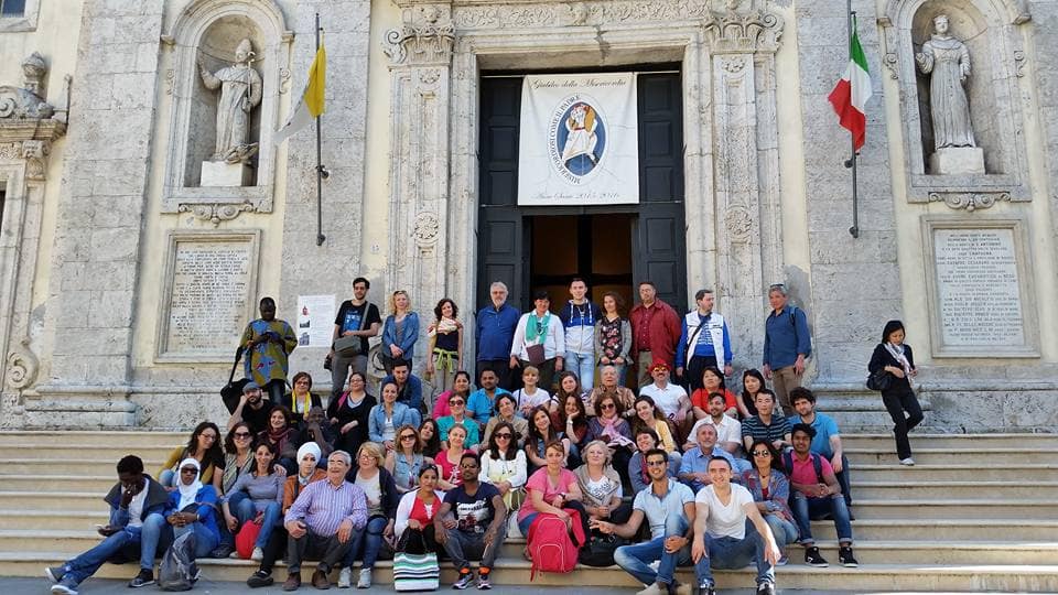 Domenica 22 maggio 2016, gli allievi della scuola d’italiano di Scuola di Pace di Napoli sulle scale della Congrega del Monte dei Morti, a Campagna