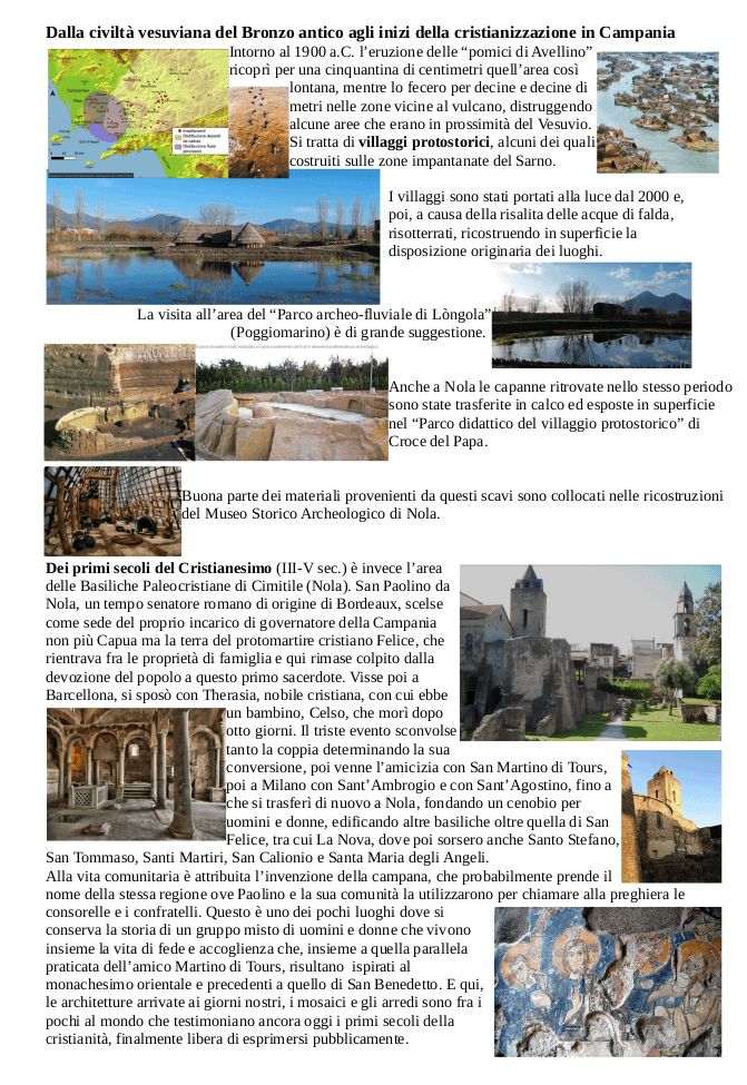 Le Basiliche Paleocristiane di Cimitile, il “Parco didattico del Villaggio protostorico” di Croce di Papa a Nola, il Museo storico-archeologico di Nola, il “Parco archeo-fluviale di Lòngola” (Poggiomarino)