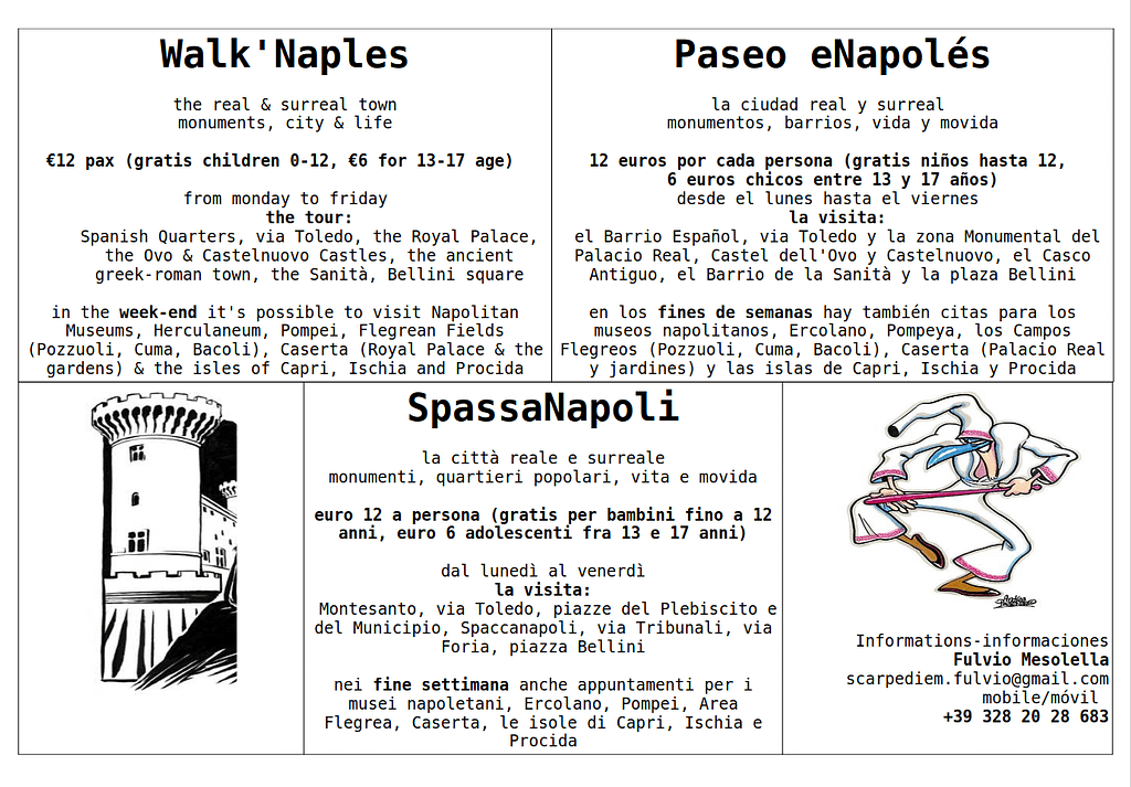 Descarga aquí la propuesta Programa Spassanapoli (esta propuesta es de 2010 para un proyecto compartido con los albergues juveniles de la ciudad para facilitar sus clientes en las visitas, pero sigue actual para tener idea de los sitios que se pueden visitar conmigo)