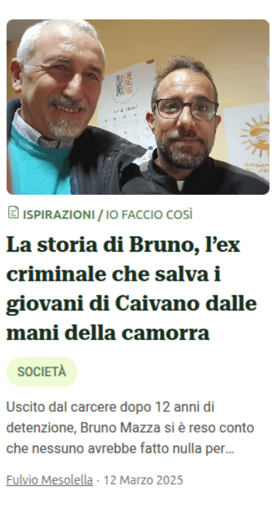 Uscito dal carcere dopo 12 anni di detenzione, Bruno Mazza si è reso conto che nessuno avrebbe fatto nulla per allontanare i giovani di Caivano da criminalità, droga e abbandono scolastico. E allora ci ha pensato lui, fondando l’associazione Un’infanzia da vivere.