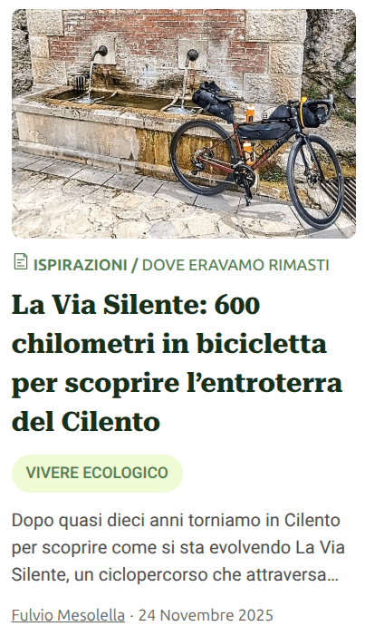 Rimasi incuriosito, molti anni fa, quando durante miei giri in Cilento vidi apparire in moltissimi luoghi i primi cartelli, che sulle strade più tranquille segnalavano questo percorso. Mi chiedevo se in questo nome c’entrasse il fiume Sele – o viceversa – fosse un particolare gioco di parole sul Cilento, questa parte meravigliosa della provincia di Salerno, simile e allo stesso tempo radicalmente diversa dalla più famosa Costiera Amalfitana. E invece “silente” indica proprio il silenzio, la pace e la tranquillità in natura.