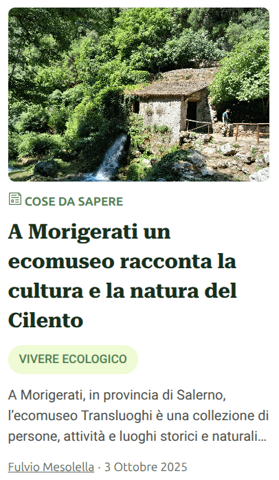 Prosegue l’esplorazione degli Ecomusei Campani: stavolta andiamo in Cilento, in provincia di Salerno, per conoscere un’attività nata con la partecipazione di tante persone, un lavoro corale che merita moltissimo sia dal punto di vista sociale, sia dal punto di vista ambientale e paesaggistico.
