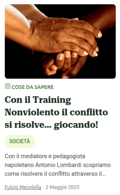 Antonio Lombardi ci racconta la metodologia del training nonviolento. Per non smettere di educare alla pace, in un’epoca in cui si sollevano venti di guerra e l’umanità sembra dimenticare l’assurdità e inutilità dei nazionalismi e delle guerre del Novecento