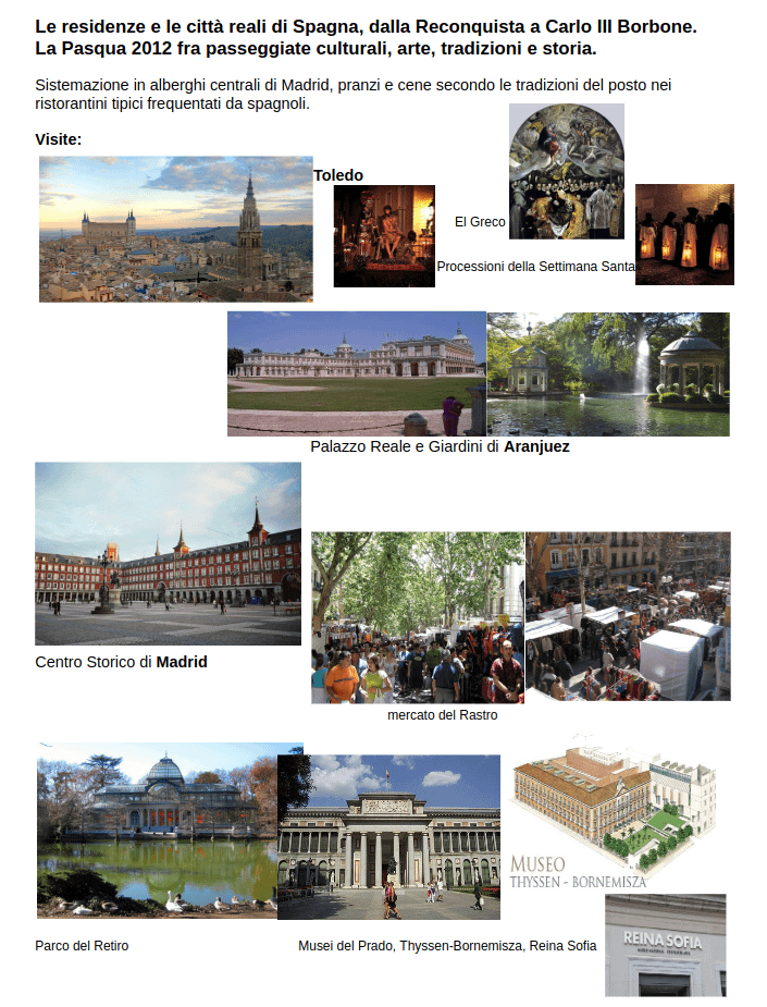 persona. Gravitando intorno a Madrid avremo un solo albergo per le 5 notti.